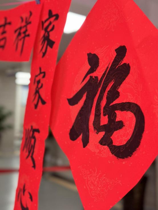活动现场,王永挥毫泼墨,为大家书写新年祝福,今年是他连续为职工书写春联的第四年,苍劲有力的文字跃然纸上,犹如行云流水。一个个“福”字承载满满的祝福,一幅幅春联书写对新年的期盼,寓意新的一年红红火火,顺顺利利,同时也描绘出了口院职工对美好生活的憧憬和向往。
