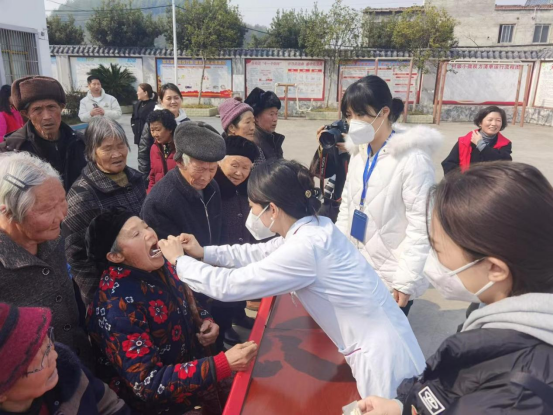 随后,贵医口腔医护人员于现场开展口腔义诊,为当地老年人进行详细的口腔检查,提供诊断意见,并耐心讲解口腔健康标准,认真宣教口腔防治知识,将口腔健康送到百姓身边。