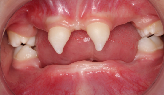患者4岁,乳牙未正常萌出,上颌仅4颗,下颌仅2颗乳牙,不能正常咀嚼,于2022年底在外地就诊多次无法修复后,专程到口腔医院就诊。在后疫情时期,患者经王永门诊诊治后商讨出诊疗方案,后经医院细心安排,于2月22日由王永带领谭雯珈、姜炜鹏等医师,使用修复、正畸、修复工艺等多项技术,顺利完成了大面积乳牙缺失修复,患儿现场进食效果良好,家长及患儿十分满意。