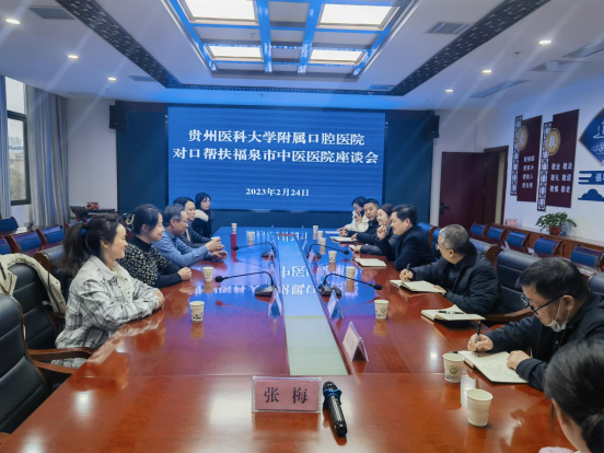 (后文简称“贵医口腔”)副院长王永带领医务科副科长高琼、护理部主任陈仕红、病理科主任胡赟一行4人前往福泉市中医医院组织召开对口帮扶总结座谈工作会,福泉市中医医院党委副书记、院长唐昌亮及医务科、院办、护理部、口腔科负责人参加会议。