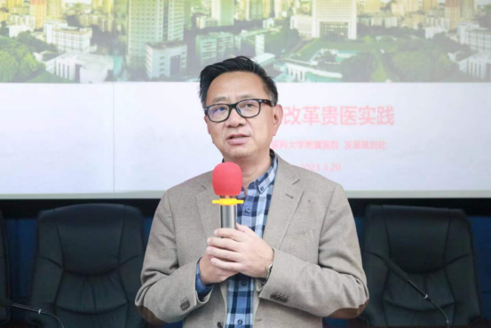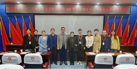 (后文简称“口腔医院”)在学术报告厅举行,贵州医科大学附属医院发展规划处处长何勤以“绩效改革贵医实践”为题作专题分享。口腔医院党委书记张军梅出席会议并讲话,党委副书记、院长马洪主持会议。