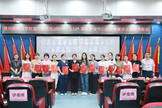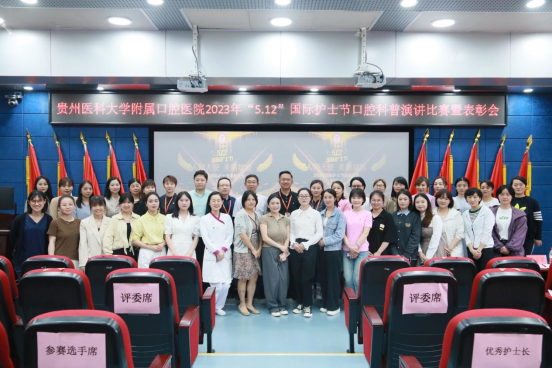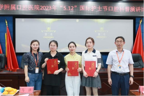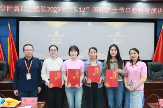 在学术报告厅举行以“科普促健康,携手向未来”为主题的“5·12”国际护士节口腔科普演讲比赛暨表彰会。院党委副书记、院长马洪,副院长唐正龙,党委副书记何雨羲及董强、刘洪静、卢虹、吴亚东、陈仕红、吴姗担任评委,各临床科室主任和来自12个科室的参赛选手参加会议。