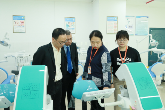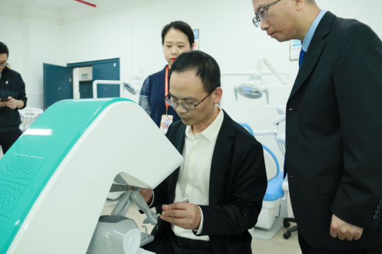党委书记张军梅及与会人员的陪同下参观了儿童青少年牙颌颜面发育管理及早期矫治中心、本科生实验室等。期间,科教科科长姚岚、实验室管理员刘玙颖介绍了本科生实验室的基本情况。