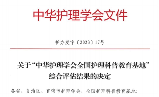 以“优秀”等次顺利通过评估,成为下一周期中华护理学会全国护理科普教育基地。