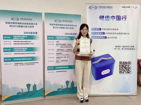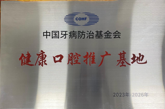在会上荣获中国牙病防治基金会“健康口腔推广基地”称号。