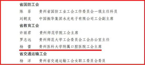 工会主席杨蕾荣获“贵州省优秀工会工作者”称号。