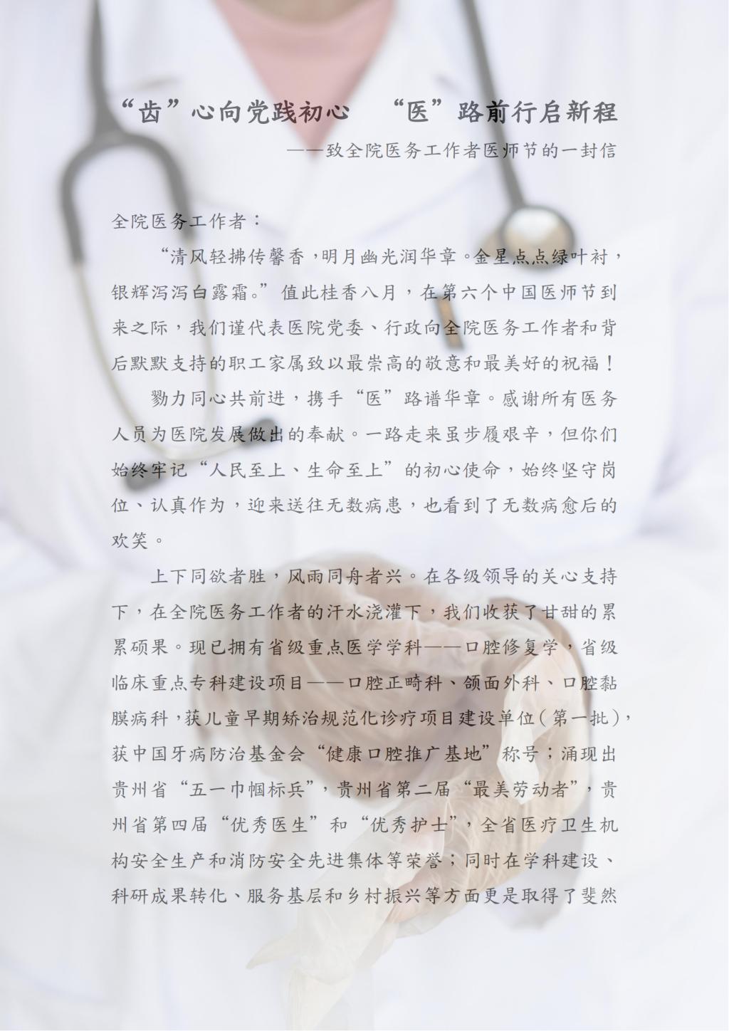 学院、医院“一套班子,两块牌子”的运营方式,有效扩大了招生优势,拓宽了就业渠道,立足新阶段,“贵医口腔”将会进一步强化开放意识,注重内涵建设,提升教学质量,开启高质量发展新征程。