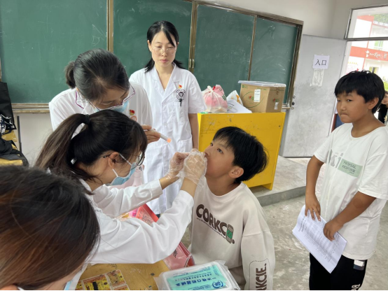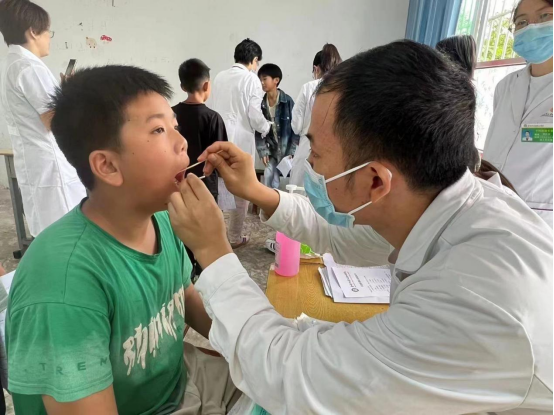 活动现场,义诊团队为千余名学生筛查了口腔健康,为患有氟斑牙等口腔疾病的学生采集了照片、登记造册,并给予了专业的治疗指导及建议,还根据每位学生实际的口腔情况填写了《口腔检查结果通知书》,便于家长了解关注其口腔健康问题。同时,义诊团队现场科普了口腔健康知识,对如何有效预防龋齿、牙龈炎等口腔卫生知识进行了宣教,指导学生如何正确刷牙,鼓励大家养成良好的口腔卫生习惯。
