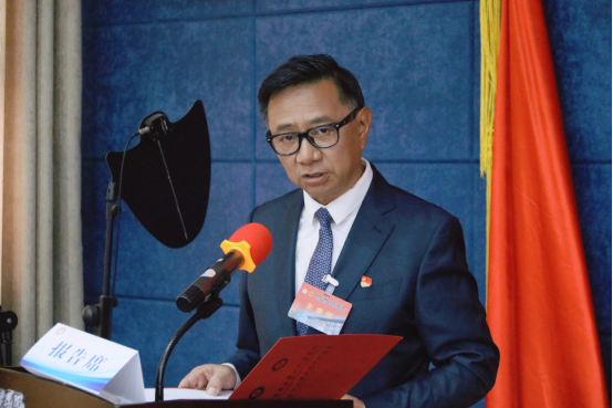 正式大会在庄严的国歌声中拉开帷幕,会议由党委副书记何雨羲主持。