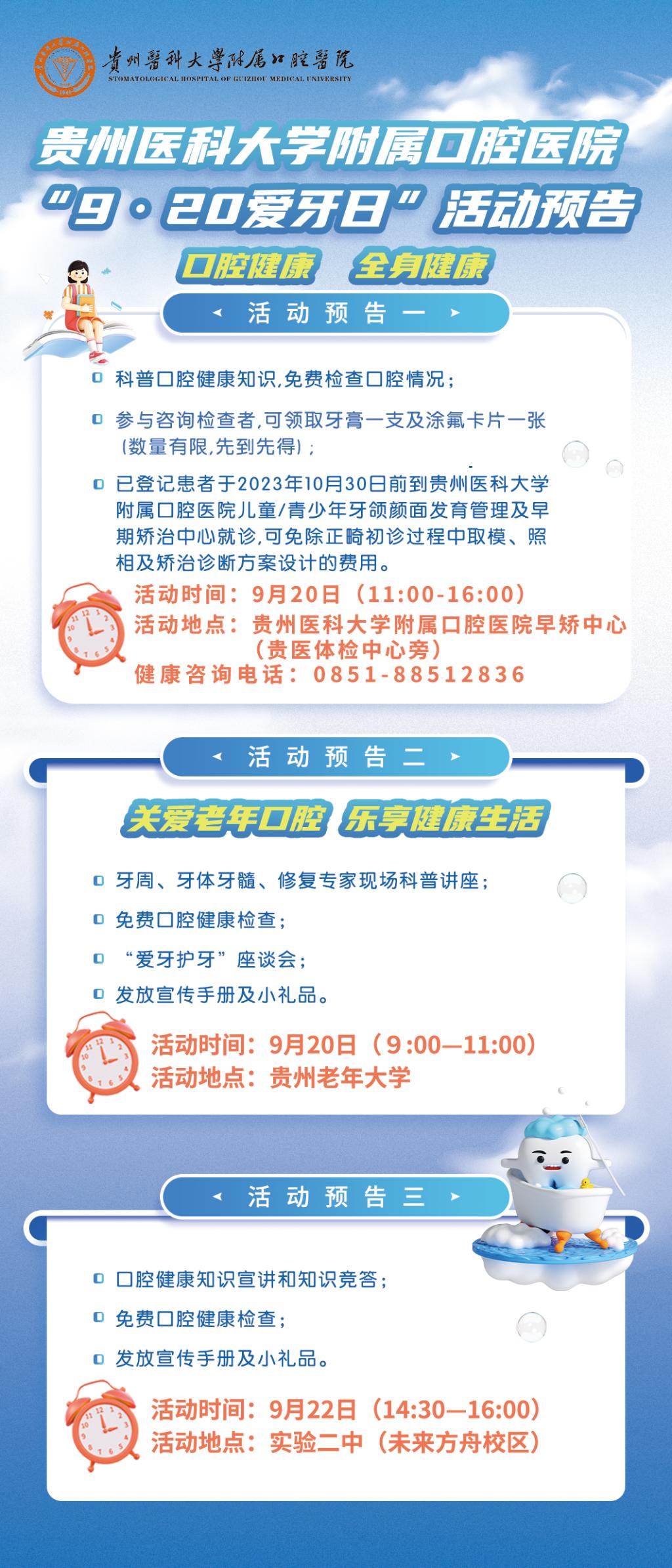 下一条:【活动预告】好消息!贵医口腔"9·20爱牙日"活动来啦!免费检查、免费涂氟、专家解答、知识讲座、知识竞答、小礼品发放......