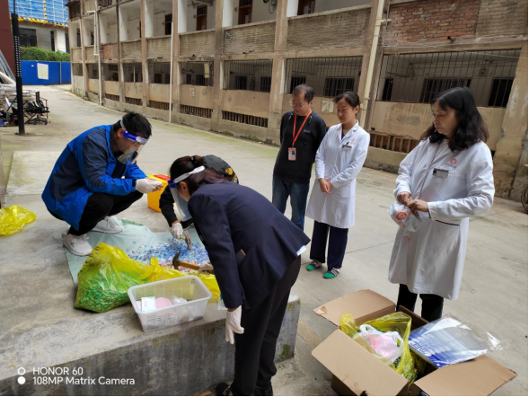 药剂科、设备后勤管理科、医务科、绿地物业四部门联合开展麻醉、精一药品空安瓿集中销毁行动。