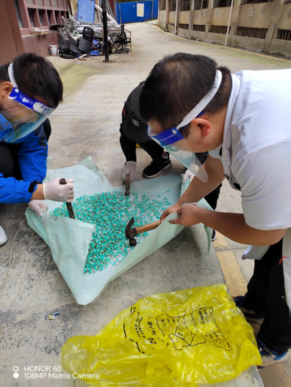 现场工作人员尽职尽责,用铁锤砸碎每个空安瓿,整个过程严谨、透明,有效避免了回收的麻醉、精一药品空安瓿流入非法渠道,为人民群众的用药安全筑牢了安全屏障,做到了麻醉、精一药品空安瓿的规范化管理。