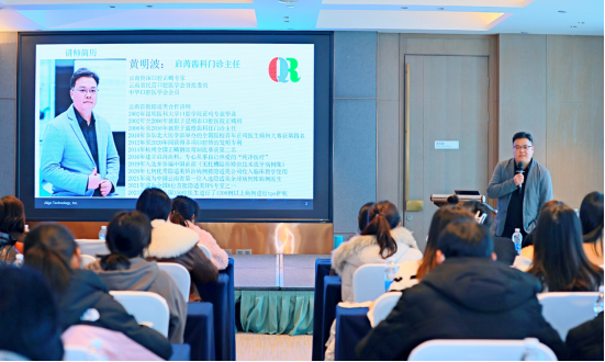 讲师黄明波以“隐适美深覆合矫治技巧”为题向大家展示了病例,并分享了矫治方案设计技巧、方案审核重点以及治疗效果成功率。