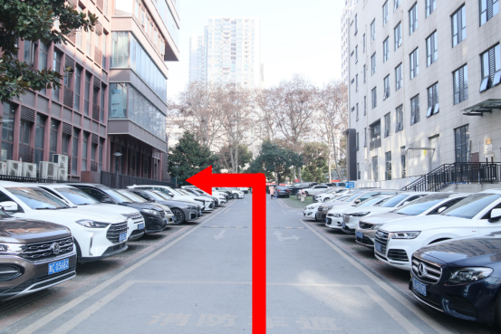 (2)下站后,向左直行约20米,随后向右直行;
