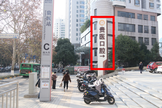 轨道交通:近日,贵阳地铁3号线正式开通,前往贵医口腔的市民朋友,可以乘坐3号线在贵医站下车,由B、C出口出站,步行5分钟即可到达,以下是道路指引图,请查看↓