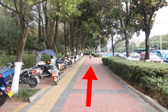 (4)进入喀斯特广场,直行约50米后再向左行走;