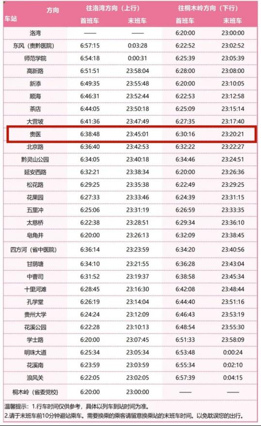 地铁3号线首、末班车时刻表