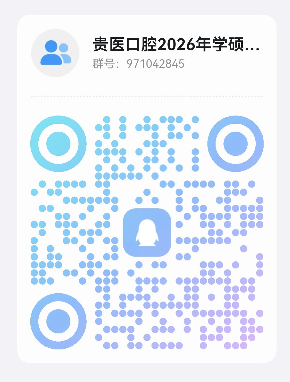 1、贵医口腔2026年学硕复试群,群号971042845(报考专业:100302口腔临床医学)