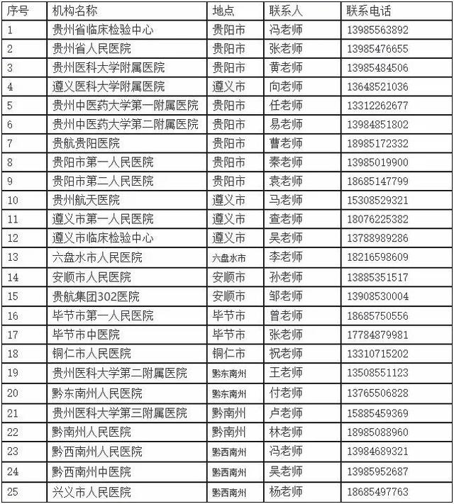 贵州省卫生健康委公布全省新冠病毒核酸检测机构名单