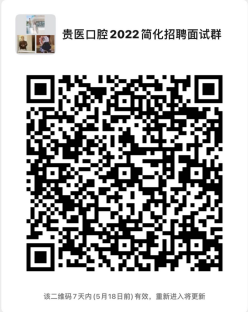 请名单上公示的考生扫描下方二维码进入微信群,群名称“贵医口腔2022简化招聘面试群”。