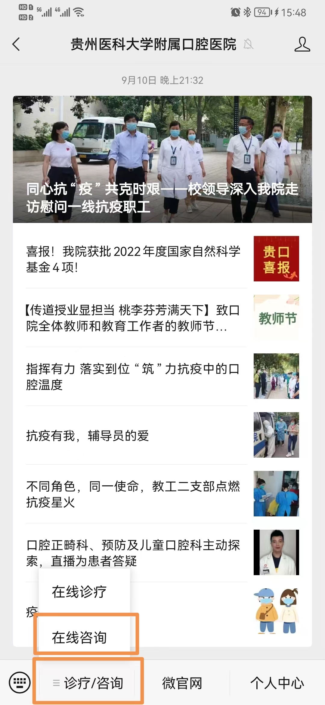 于9月11日正式推出免费的线上首诊咨询,使大家足不出户即可得到医院各临床专家的口腔诊疗建议与指导,操作方式如下: