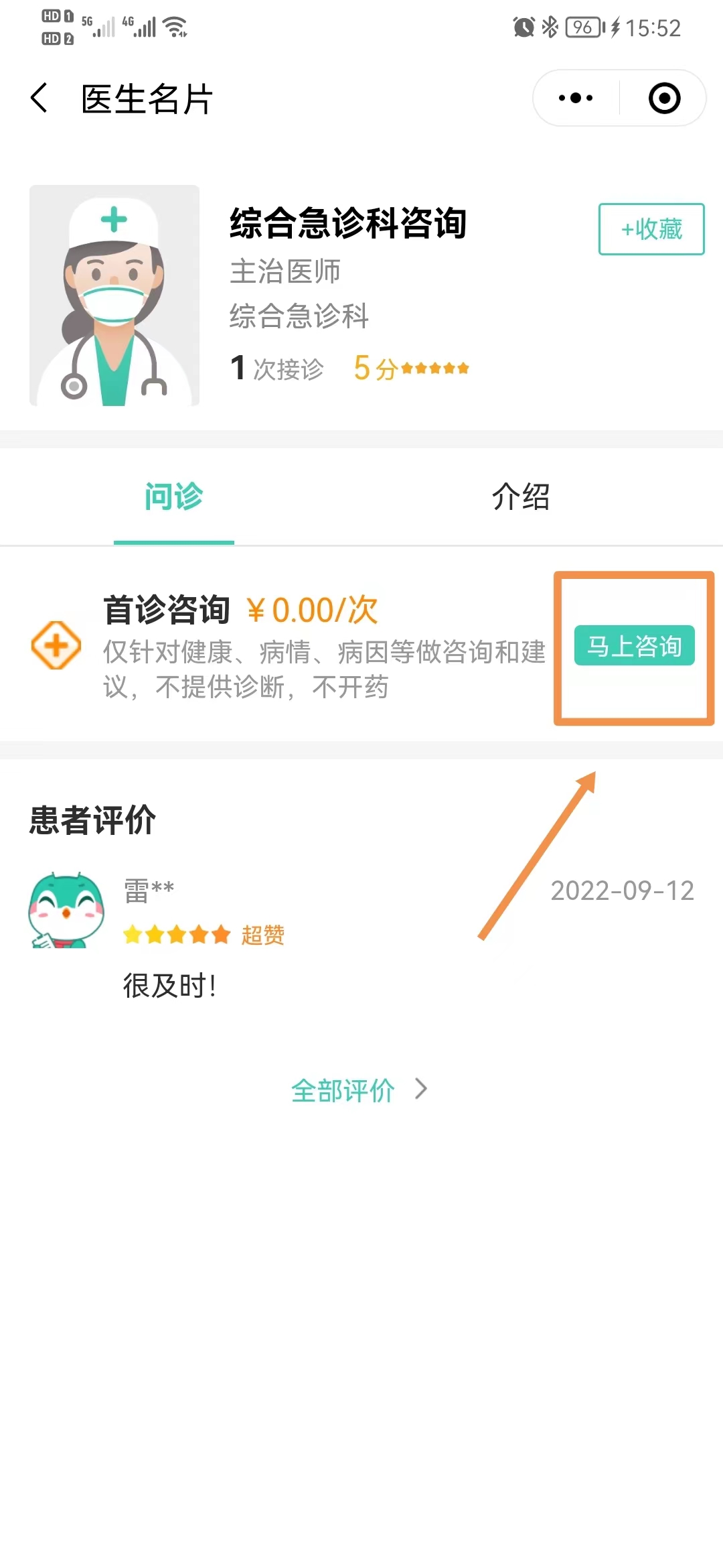 3. 选择相应的科室点击进入,并点击“【马上咨询】”进入信息填写页面;