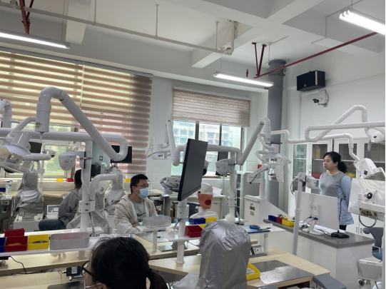 廖健对学员在规培结业考试中的注意事项作出专业性指导和建议,希望各位同学认真练习、积极备考,做到考场上临危不乱,沉着应对。刘屿颖通过演示为学员们讲解如何正确使用仿头模,为每位学员准备了相应的训练口腔操作器材,保障培训顺利进行。