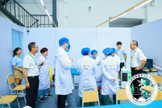 11名专家王永、廖健、吴亚东、宋具昆、谭旭、付雪飞、王珣、王婷婷、陈河林、莫朝伦、宋彦蓉受邀担任大赛裁判,带教老师李毓勤及住院医师王亚静、王欢、黄志才、解瑶、罗云彩、李光尧、吴雪参赛。比赛由毕业后医学教育管理科科员吴秋蓉带队。