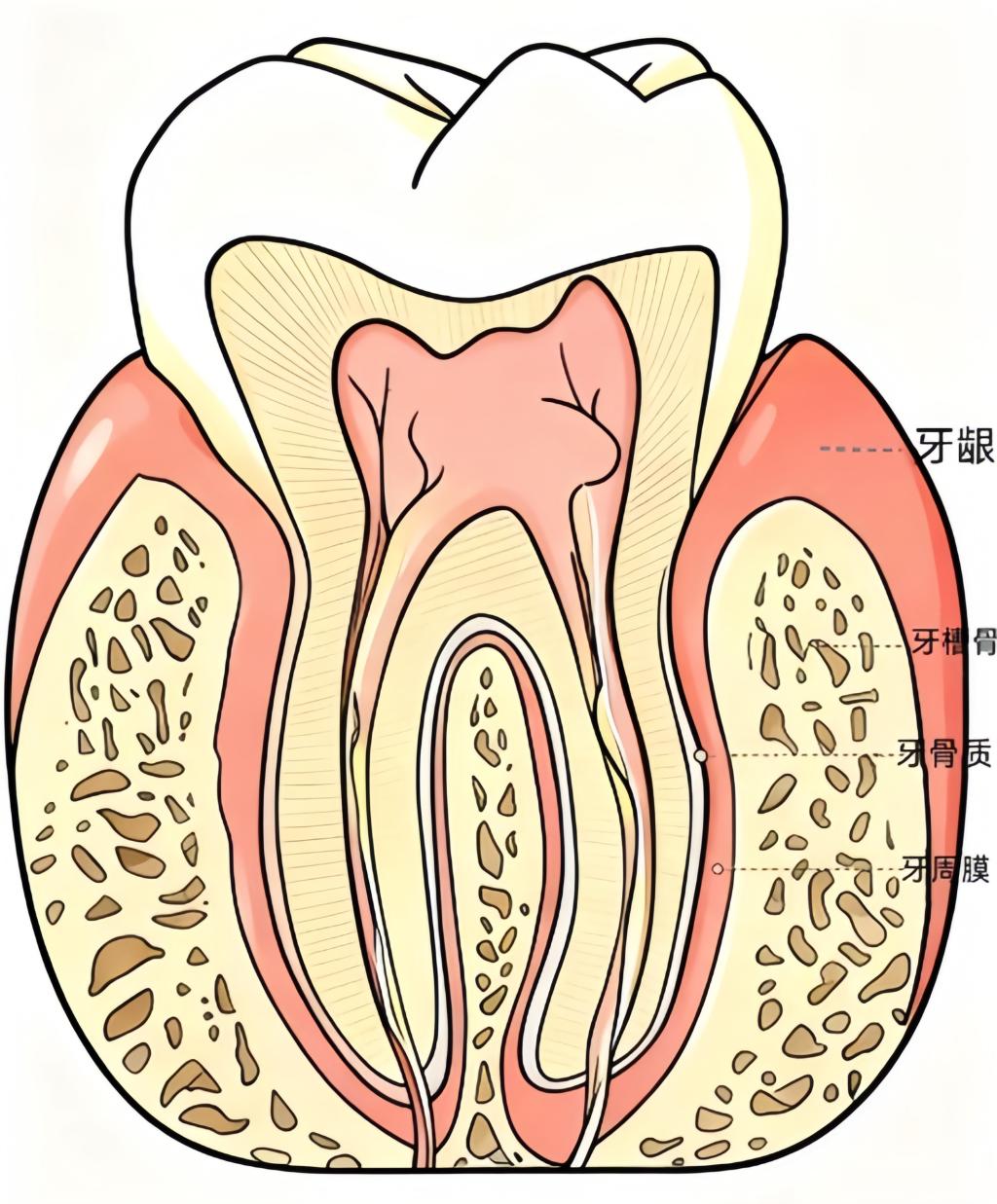 牙周组织示意图(来源于口腔解剖生理学图谱)