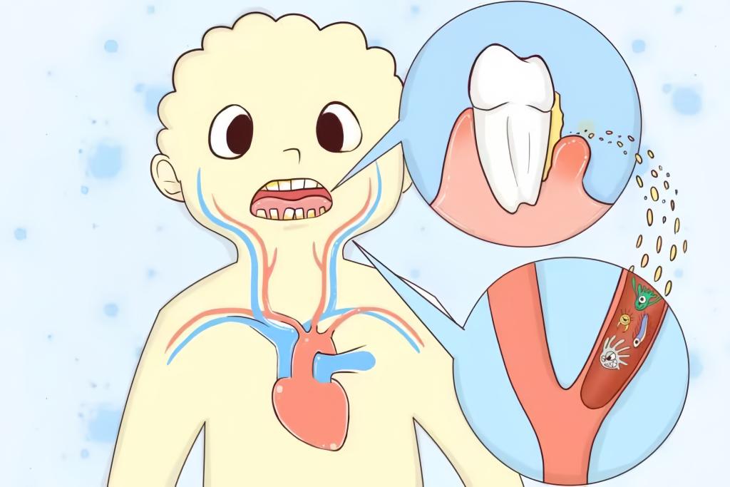 牙周病的危害并非局限于口腔,还涉及全身多个系统。细菌及其代谢产物可通过牙周组织进入血液,病原微生物会黏附于血管壁,损害内皮细胞,增加血液黏稠度,促使血栓形成,从而增加心肌梗死的风险。每天正确使用牙刷和牙线清洁牙齿,可减少口腔中引发动脉粥样硬化的细菌,降低心脑血管疾病的发生概率。