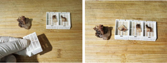 标本固定良好之后,医生进行取材,需要取到病变的部位,标本要有代表性。