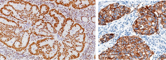 切好的白片进行染色:常规HE染色,染色后封片,这样一张病理切片就做出来了。