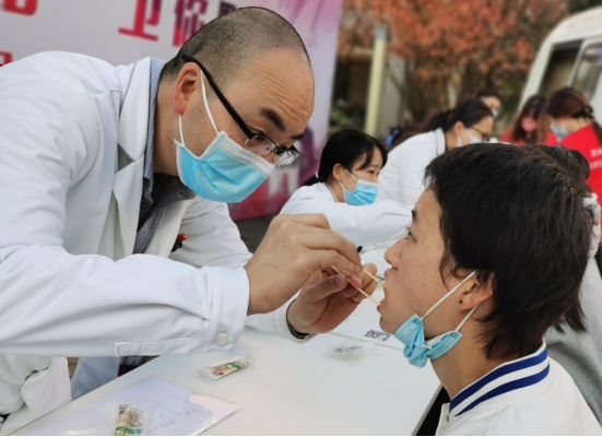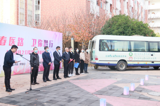、附属口腔医院(后文简称“口腔医(学)院”)联合举办的“青春医路·卫你黔行”项目之“暖冬义诊行 医护润‘齿’心”大型义诊活动在贵州医科大学(后文简称“学校”)南校区举行,来自联合单位的百余名教职医护后勤人员及志愿者以实际行动践行理想信念,以专业技能回馈社会、关爱学生,免费为学校2022级新生进行口腔健康检查和健康宣教。