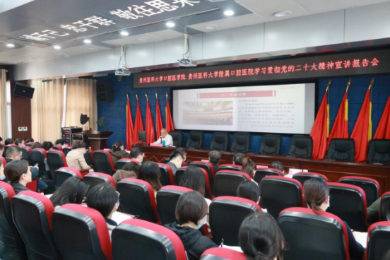 会上,田晓滨紧扣宣讲主题,围绕“战略定位——关键时刻召开的一次十分重要的大会”“大会主题——党和国家事业发展的总纲”“实践基础——过去五年工作和新时代十年伟大变革”“理论指导——把握习近平新时代中国特色社会主义思想”“基本路径——以中国式现代化推进中华民族伟大复兴”“根本保证——以伟大自我革命引领伟大社会革命”“使命任务——坚持以人民为中心,办好人民满意的百年医科大学”“团结奋斗——牢记五个必由之路”八方面,结合自身工作经历和贵州医科大学实际,运用详实资料和典型事例与大家分享学习感悟,详细解读了党的二十大精神。强调要认真学习领会党的二十大精神,更加紧密地团结在以习近平同志为核心的党中央周围,必须牢牢把握“五个重大原则”,做到“三个必须”,用奋斗书写精彩答卷,用实干开创美好未来,为多彩贵州现代化建设助力。