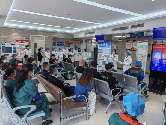 贯彻落实党的二十大精神用理论指导实践,切实为群众办实事,提升身边人口腔保健意识,118日中午教工第六党支部组织开展情系口腔健康,为群众办实事主题党日活动,免费为医院保洁、保安检查口腔并作口腔健康宣教。教工第六党支部全体党员入党积极分子及牙周黏膜科民主党派人士参加此次活动支部书记蔡扬主持活动