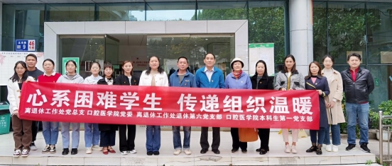 为践行党的二十大精神,发挥关工委、离退休工作处党总支和口腔医学院党委“以党建带关键”的作用,助力青年学生成长成才,11月8日,学校离退休工作处党总支退休第六党支部与口腔医学院本科生第一党支部在离退休处会议室开展共建活动,主题为“心系困难学生,传递组织温暖”,切实把党的温暖送入困难学生手中。