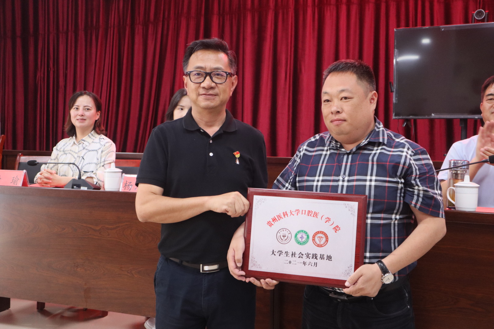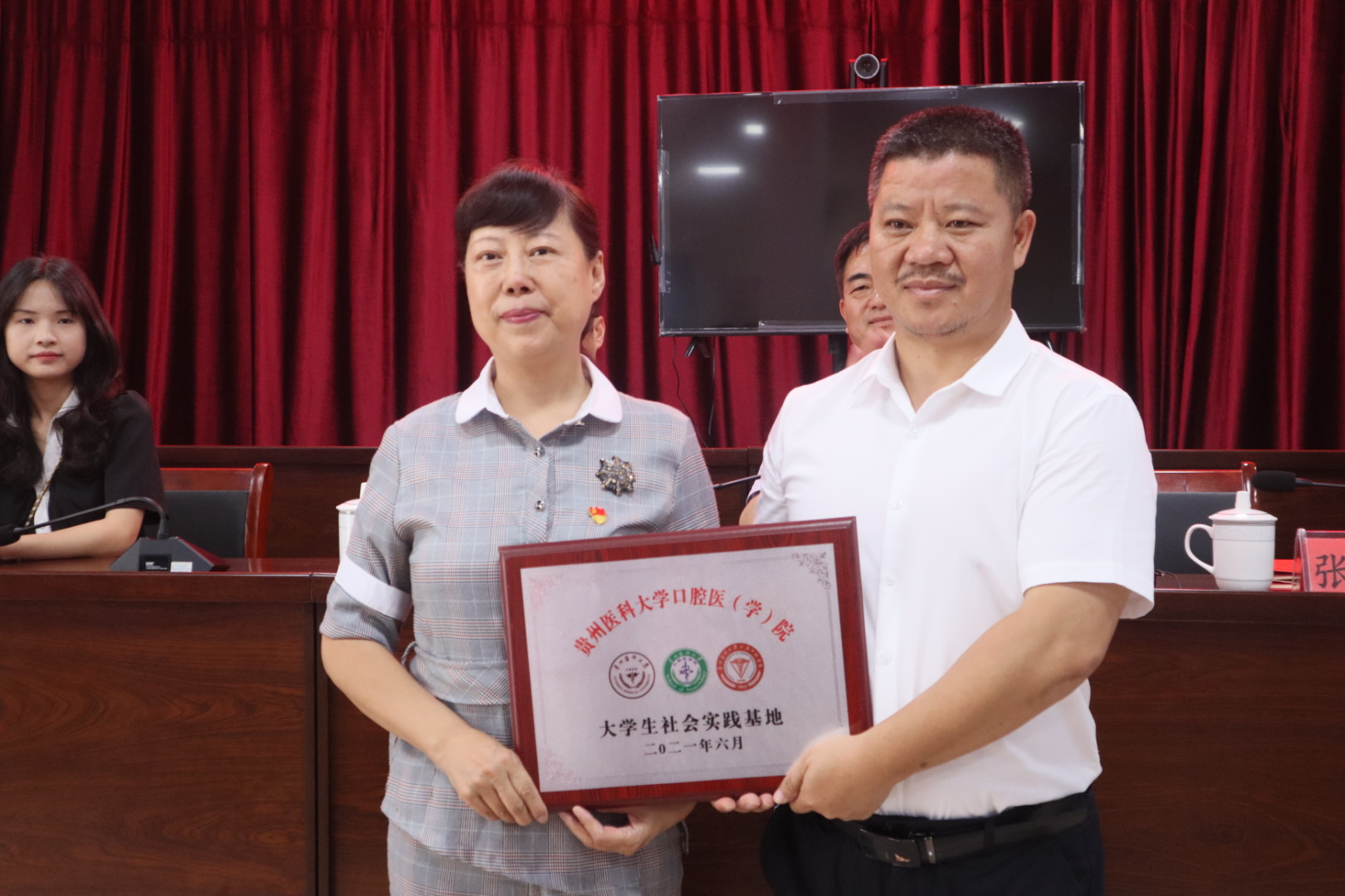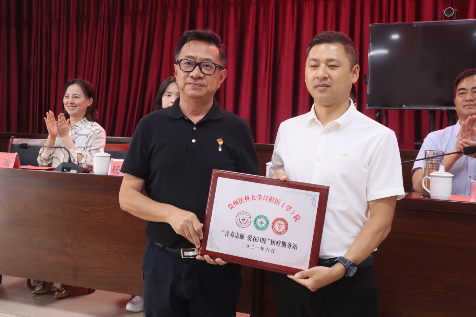 6月19日,由贵州医科大学口腔医(学)院与贵州省励志助学中心共建的【青春志愿•爱在口腔 医疗服务站】及【口腔医学院大学生社会实践基地】落地赫章县金银山街道、七家湾街道、汉阳街道。出席活动的领导及嘉宾有:口腔医(学)院党委书记张军梅,党委副书记、院长马洪,副院长唐正龙,副院长王永,党委副书记何雨羲;贵州省励志助学中心秘书长、民盟省直关爱教育支部主委周巧明;赫章县委常委、县委宣传部部长统战部部长于刚,县委常委、副县长唐瑜,县政协副主席王润丽及相关工作人员。本次活动在金银山街道举行,由口腔医(学)院团委主办,医护人员、后勤人员及本科生、研究生党员及易地扶贫搬迁点群众共计500余人参加本次活动。