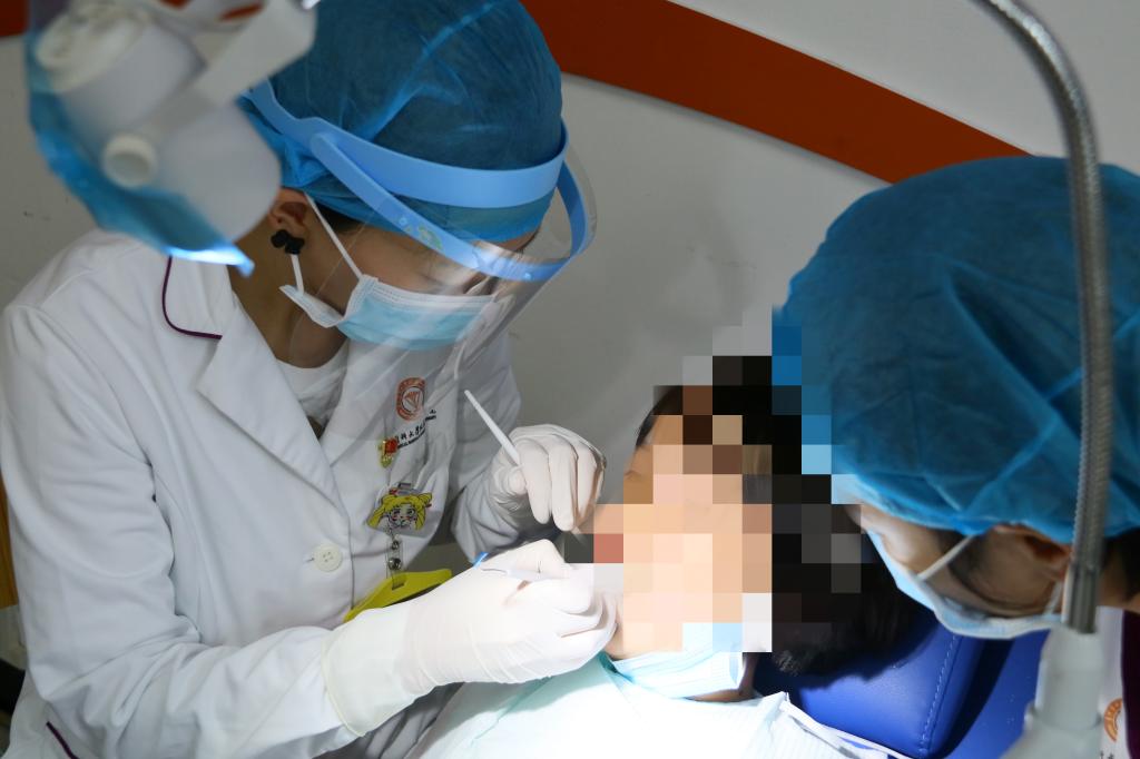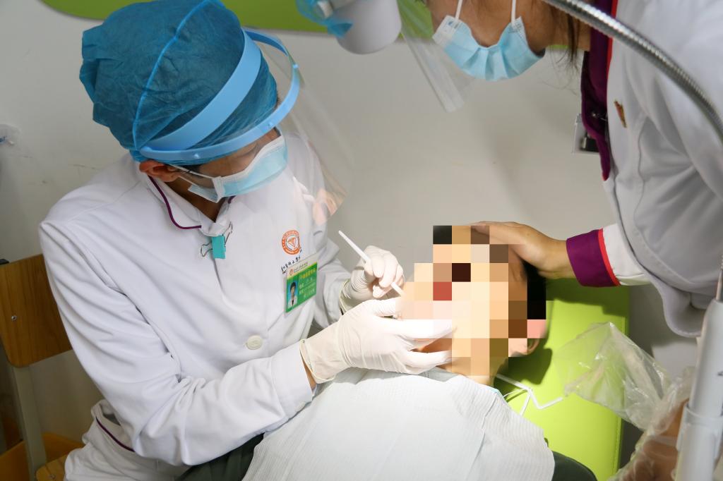 活动前期,口腔医院提前协调各方,为参加此次诊疗的孩子们建立口腔健康档案,掌握孤残儿童的口腔健康状况,包括龋病、牙周病等口腔常见疾病的患病状况及影响因素,了解孩子们及监护人的口腔健康知识水平和对于口腔疾病预防诊疗的态度及行为状况,准备可移动牙椅、诊疗设备、药品、用具等,为此次活动做足“功课”。活动现场,医疗团队发挥预防及儿童口腔专业优势,与孩子们耐心沟通缓解焦虑,对孩子们进行口腔卫生指导、全口涂氟、对适龄儿童进行窝沟封闭等龋齿预防措施、对部分有需要的孩子进行龋齿充填和基础的牙周治疗,同时记录干预措施实施情况,对效果进行分析、评估,给出进一步的治疗方案及建议。