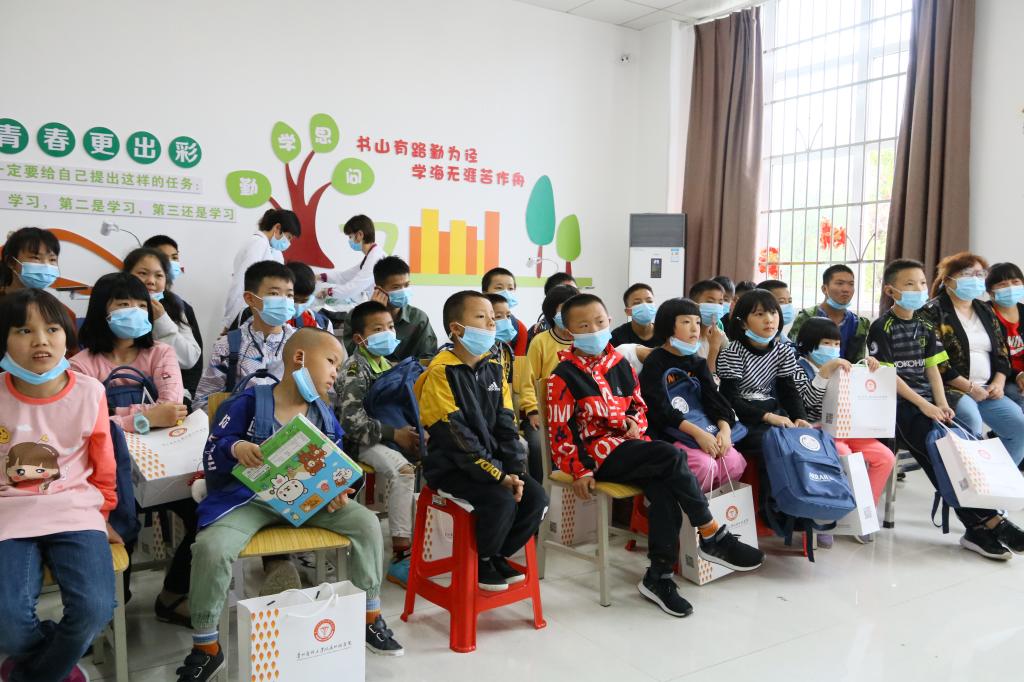 启动仪式后,与会领导亲切地为孩子们赠送书包、文具、绘本、牙具等纪念品和学习、生活用品。
