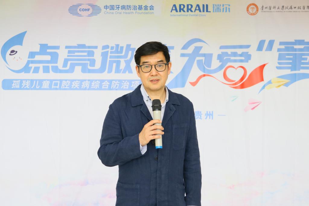 (后文简称口腔医院)负责贵州地区该项目的具体实施。口腔医院党政领导高度重视此次活动,由班子成员带队赴贵阳市救助站完成项目启动仪式的落地和该项目第一次救助活动的具体实施,为贵阳市儿童福利院孤残儿童送去“口腔健康”及人文关怀。口腔医院党委书记张军梅和党委副书记、院长马洪出席启动仪式并致辞;中国牙病防治基金会副秘书长王渤、瑞尔集团副总裁兼首席运营官曲勃出席活动并讲话。