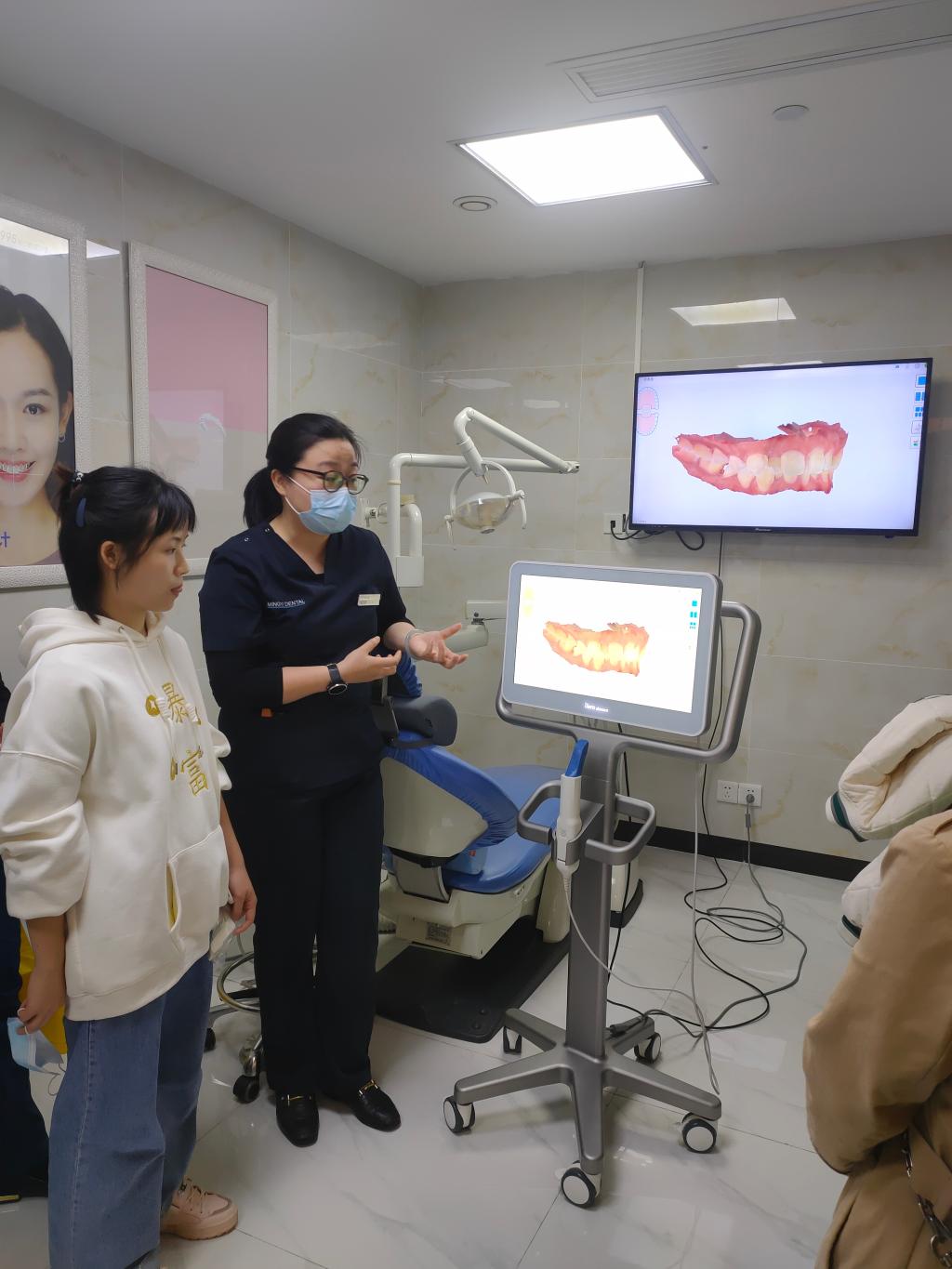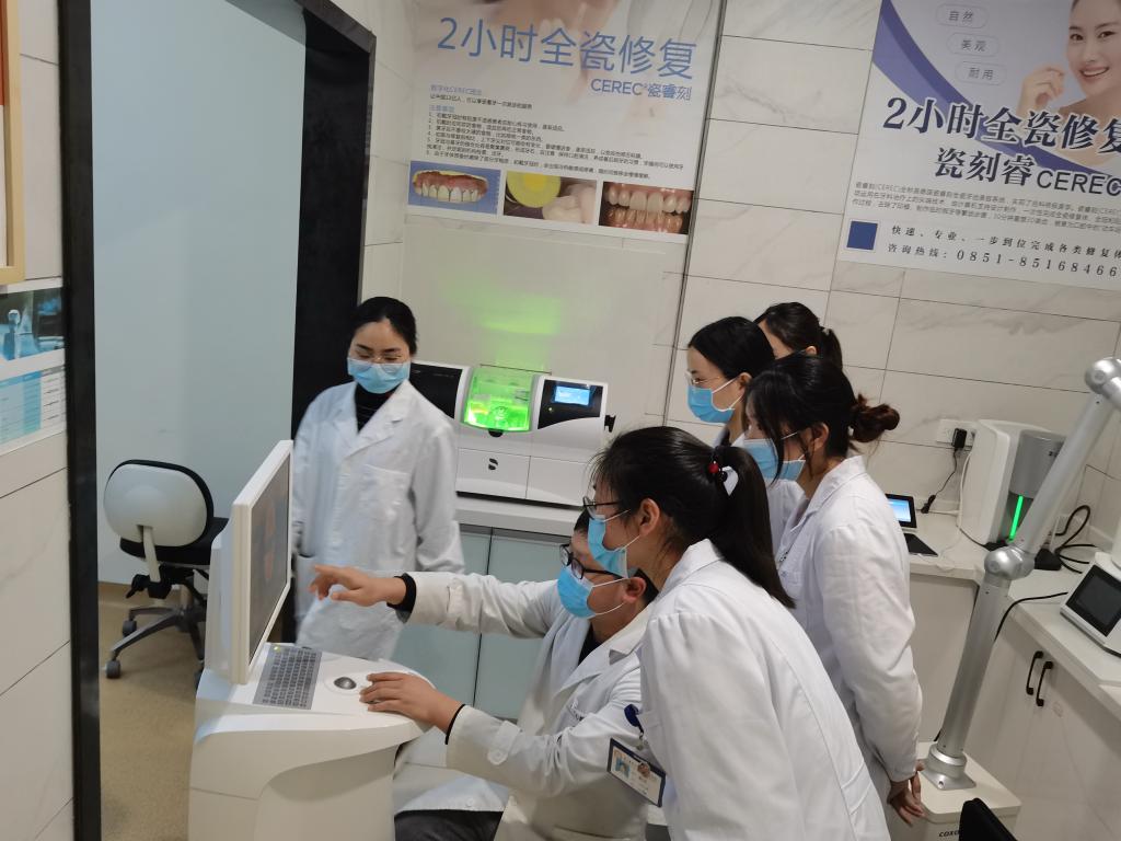 4月26日下午,教工八(护理、手术室、导诊)支部书记吴姗带领“一对一”帮扶毕业生及口腔高职护理实习生到贵阳云岩名谊口腔医院参观学习。贵阳云岩名谊口腔医院王院长向同学们介绍了名谊口腔医院的发展史、服务理念、诊疗方向以及当前的发展状况,并带领大家参观了医院门诊、个性化儿童诊室、成人诊室在参观Digital center时,一名志愿者同学受邀体验了医院的三维图像分析系统。随后,王院长邀请一名高年资医生与护士长在会议室跟同学们进行了进一步交流,向同学们客观分析了选择公立医院或民营企业的利弊,并分享了个人经历择业时的不安与彷徨,希望大家不忘初心,脚踏实地,学好专业知识与技能,迎接好每一次的挑战与机遇。