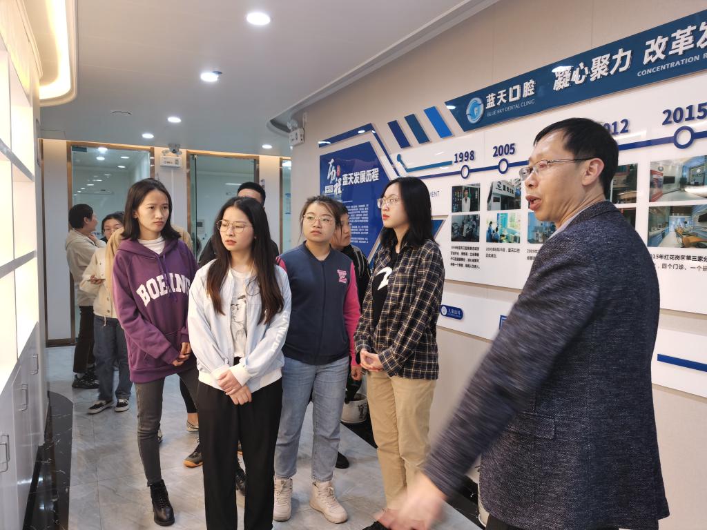 4月21日下午,教工五(口腔正畸)支部联合教工四(修复种植)支部开展促进毕业生就业帮扶活动,由教工五(口腔正畸)支部书记贾莹带领2016级口腔医学临床实习生赴遵义市蓝天口腔医院参观学习。该院蔡院长在带领同学们参观院区后,分享了建院理念、医院现状、未来发展规划等,与同学们深入交流有关就业问题表示非常欢迎同学们毕业后加入蓝天口腔。座谈会上贾莹表示,希望同学们认清当下口腔行业发展现状,结合自身情况进行选择,也希望此次参观学习能对同学们在就业、择业上的思考有所帮助