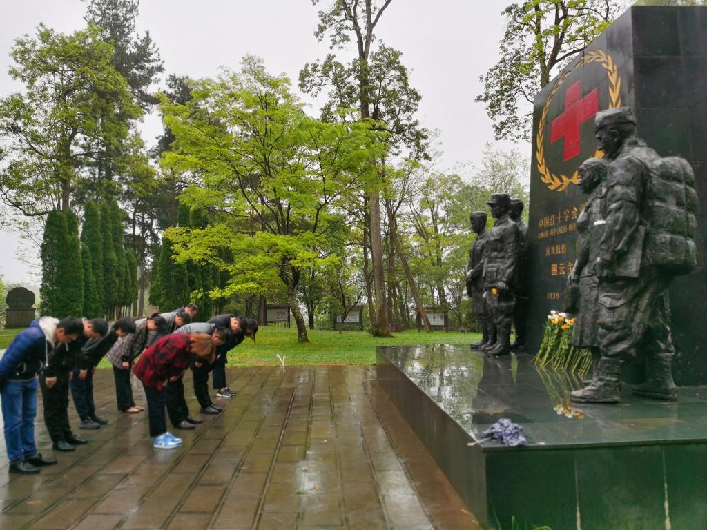 为追悼长眠在这方热土上的英灵、深切缅怀革命先烈们的丰功伟绩,寄托对革命英魂的无限哀思,从革命先烈身上汲取伟大的精神力量,转化为锐意进取、扎实工作的实际行动,为实现中华民族伟大复兴的中国梦做出积极贡献,4月6日下午教工三(口外)支部全体党员及入党积极分子到“中国红十字会救护总队图云关旧址”开展2021年“缅怀先烈,为中华民族崛起发奋图强”清明祭扫烈士墓主题党日活动。