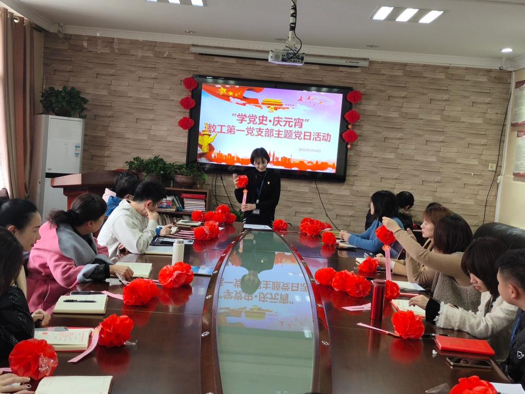 根据《关于认真学习贯彻习近平总书记在党史学习教育动员大会上的重要讲话的通知》安排,为进一步开展好党史学习教育,推动党员深入学习领会习近平新时代中国特色社会主义思想,更好总结历史经验、认识历史规律、掌握历史主动,引导广大党员干部从党的建设历程中感悟马克思主义真理力量,特在中国传统节日元宵节之际组织此次“学党史、庆元宵”主题党日活动。此次活动在行政楼五楼会议室召开,党委书记张军梅以普通党员身份与教工一支部全体党员、预备党员、积极分子一同参加。活动由组织委员张黎蓉主持。