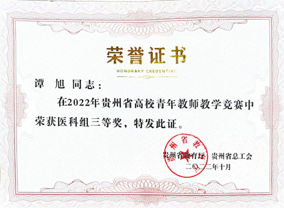 |谭旭:医学之所以不断进步,源于薪火相传、创新突破。每位医者都是优秀的师者,用实际行动践行着师者的职责,诠释着为人师的意义。我坚信传承才有创新,希望将自己所学全部教授给渴望求知的年轻心灵。我在传授知识时会采用信息化手段和新颖多样的教学方式激发学生的学习兴趣和主动性,注重理论知识与临床实践相结合,以生动的病例来阐述基本理论,通过介绍新技术和新材料,使学生了解现代口腔医学的发展动向,还根据自己的教学经验和课程的实际需要,进行一系列实实在在的教学改革,广受学生好评,曾在贵州省高校青年教师教学竞赛中荣获“三等奖”的成绩。
