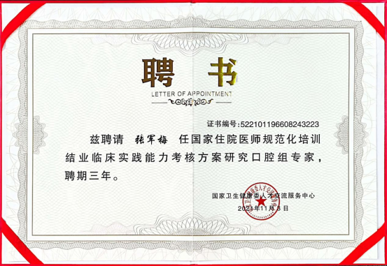 张军梅 教授、主任医师、硕士研究生导师,贵州医科大学口腔医(学)院党委书记,国际牙医师学院中国区(ICD)院士。从事口腔正畸临床工作32年,中华口腔医学会正畸专委会委员、贵州省口腔医学会正畸专委会副主任委员、贵州省口腔医学会常务理事,Invisalign隐适美及时代天使认证医师,是国家住院医师规范化培训结业临床实践能力考核方案研究口腔组专家。