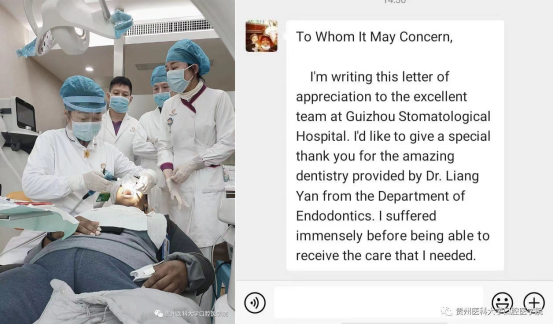 梁燕将为病人解忧作为毕生追求,常说:“医者,德为先。要将匠心与爱心融合,才能真正为患者解忧,才能成为一个优秀的医务工作者。”她是这么说的,也是这么做的。2021年3月,一位外国友人患者因为牙痛来到91直播