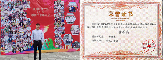 廖健老师在临床诊疗工作之余,兼顾口腔修复学教学及科研工作,他教学严谨、备课认真、有自己独特的教学方法,能将临床融入理论知识,讲学时深入浅出,深受广大学生的喜爱。学校和学院也十分认可廖老师的教学成果,曾被评为贵州医科大学优秀教师,曾获教育工作先进个人称号、贵州医科大学教师讲课比赛优秀奖,近三年共指导硕士研究生7名,其中6名同学获得过国家奖学金,其研究生黄晓林曾获2019年优秀硕士学位论文一等奖,姚超获2018年优秀硕士学位论文三等奖。