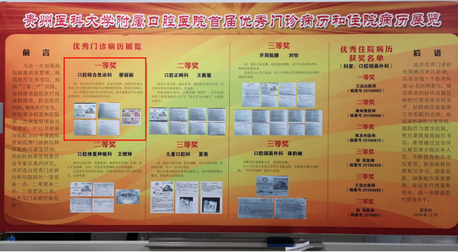 第一届病历比赛,获得门诊病历第一名;在研口院临床创新项目一项;先后两次参与班主任讲师团系列讲座活动,为实习同学开展“执业医师考试指导”讲座。“细微显真情,平凡塑仁心”,是廖丽丽医师一直以来遵循的医路训诫,在口院领导的带领及科室同事的帮助下,努力为患者服务、为口院建设发展贡献自己绵薄之力。