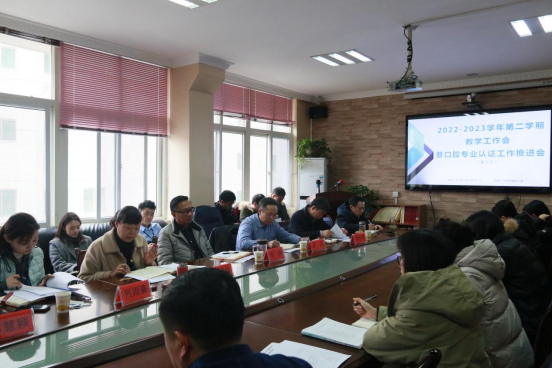 在行政楼五楼会议室召开2022—2023学年第二学期教学工作会暨口腔医学专业认证工作推进会,安排部署新学期教学工作及专业认证工作,院党政领导班子成员出席会议,副院长王永主持会议。